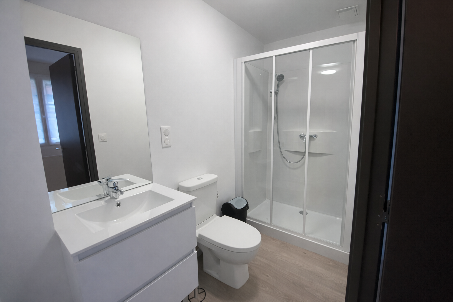 une salle d’eau privative (douche, lavabo et WC)