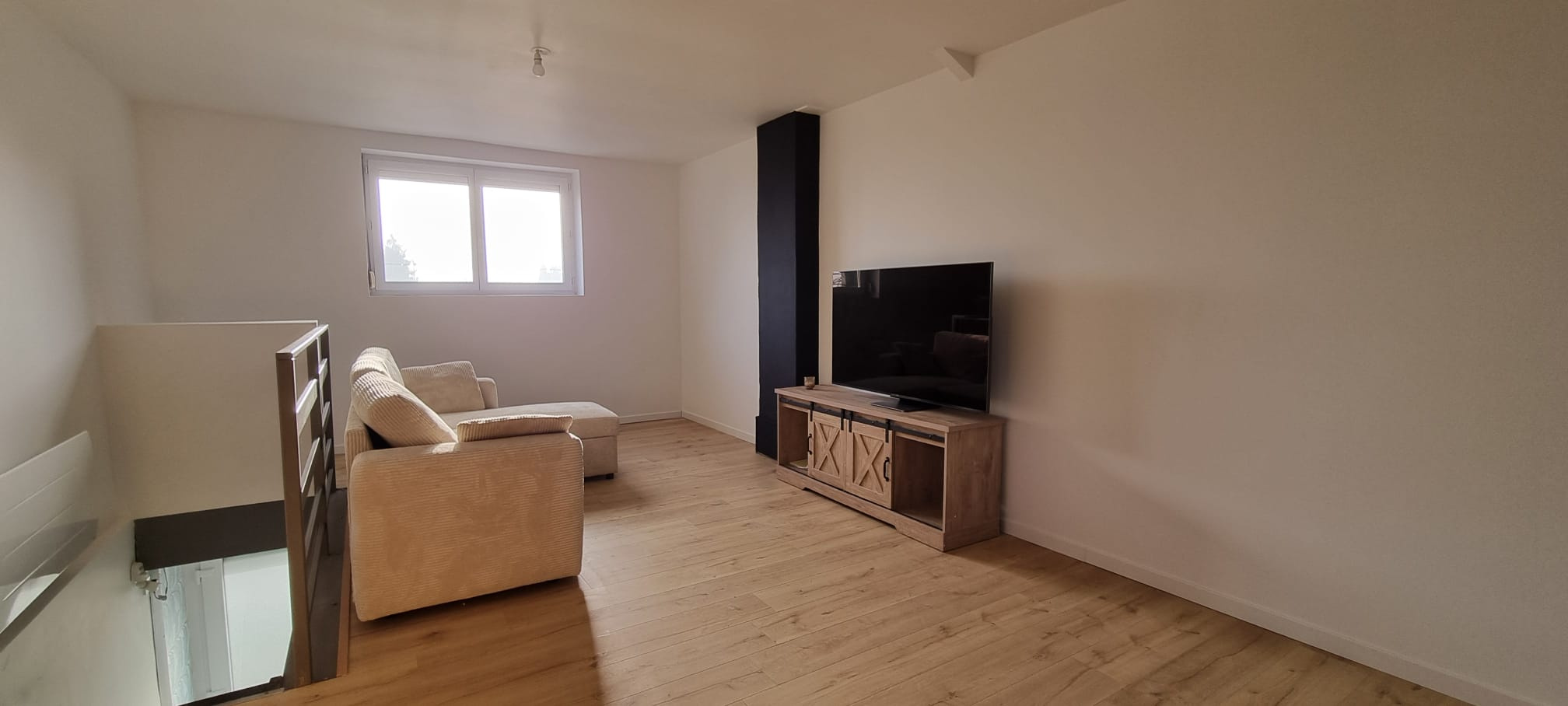 Au premier étage, un appartement d’environ 57 m², actuellement loué 550 € par mois.