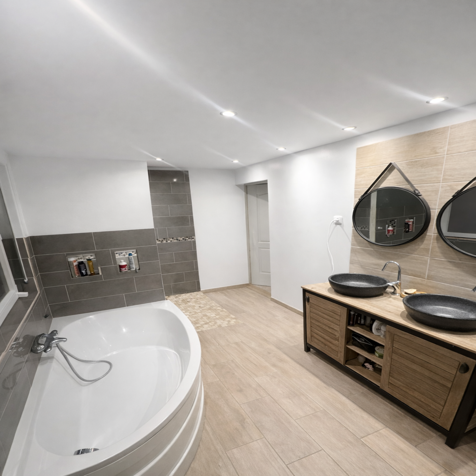 Salle de bains moderne avec douche et baignoire