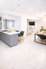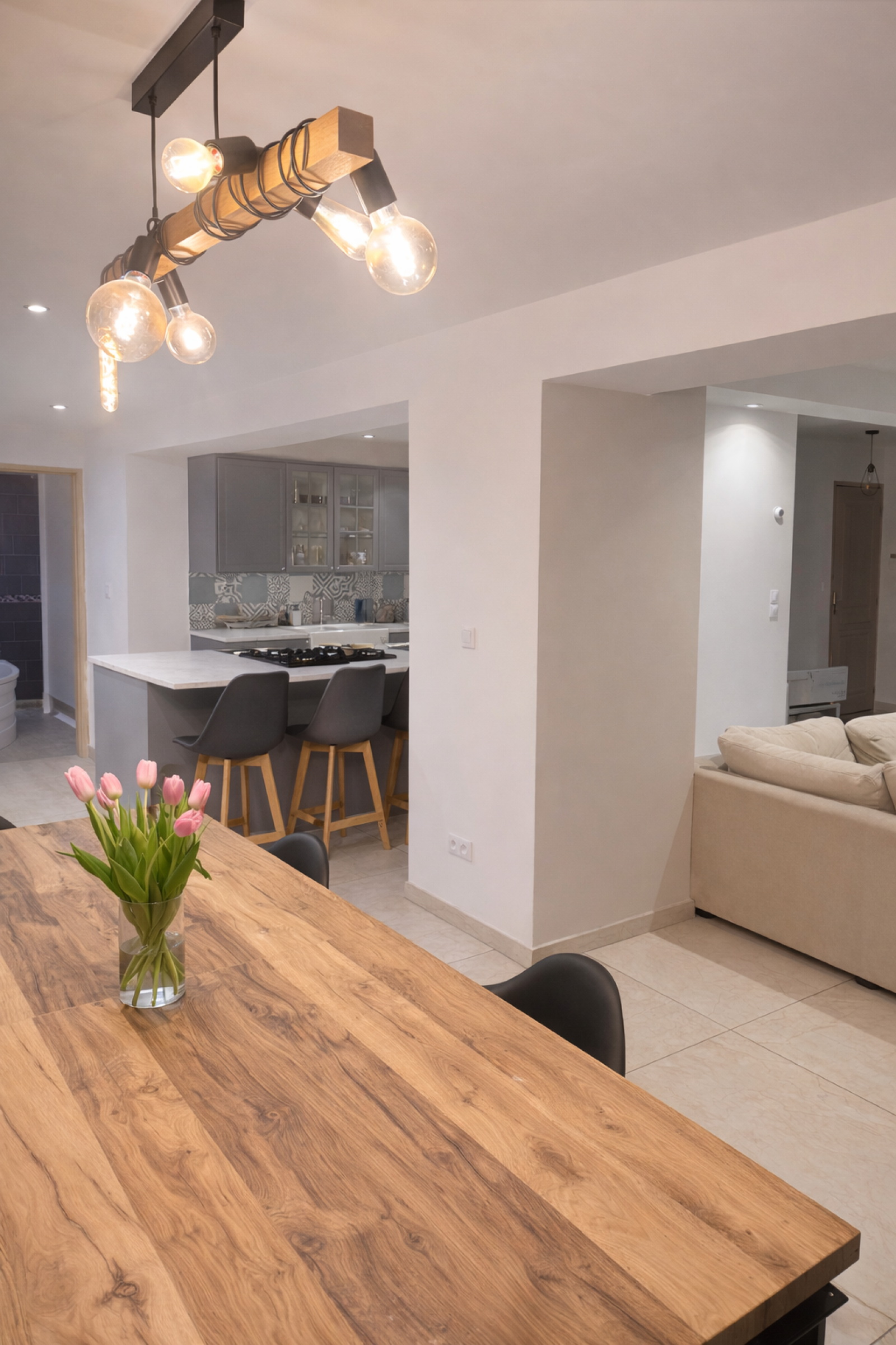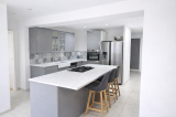 Cuisine équipée avec îlot central, fonctionnelle et conviviale