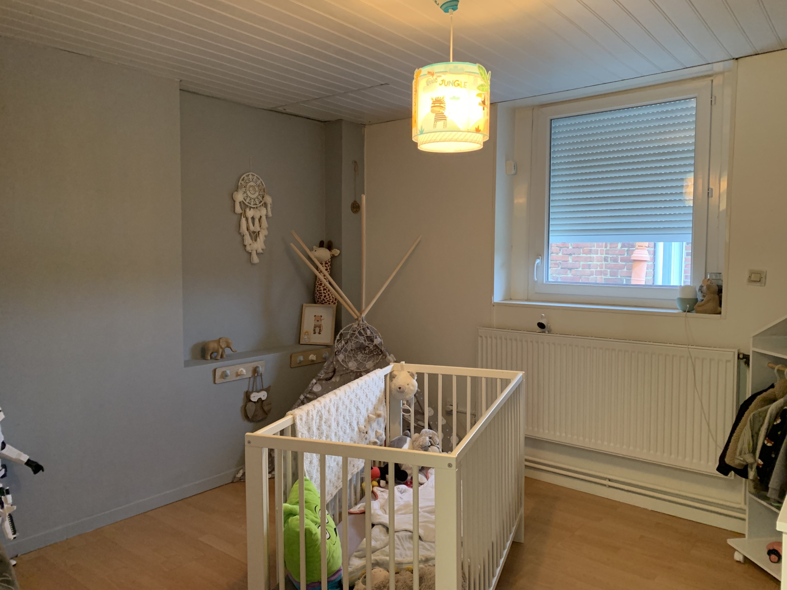 Cette maison bien entretenue se compose au rez-de-chaussée d'un séjour lumineux donnant sur une cuisine ouverte équipée entièrement rénovée, un jardin de 120 m2 avec abri de jardin aménageable.
